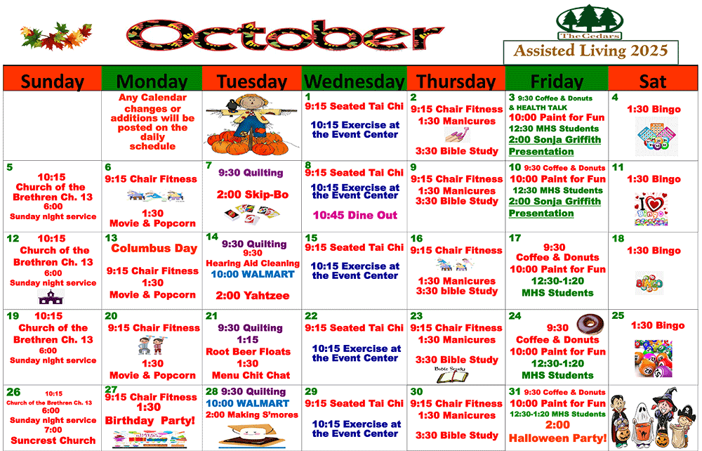 Older adults of all ages call The Cedars home, drawn to our community for the care we provide at all stages of life. Moreover, our home health services are provided by outside agencies and are tailored specifically to your healthcare needs. Residents benefit from our new Memory Care unit and our Rehabilitation program, designed to give residents time to recuperate from illness or injury.